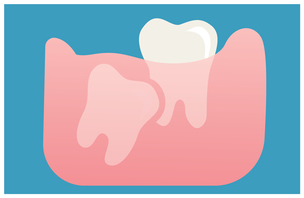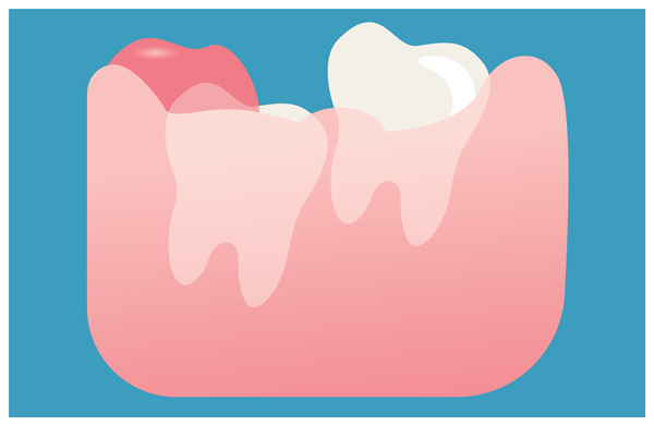 The most frequent clinical problem we see is pericoronitis, a localized gum infection. Without enough room for total eruption, the gum tissue around the wisdom tooth can become irritated and infected, resulting in recurrent pain, swelling, and problems with chewing and/or swallowing.